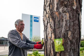 (Adnkronos) – All'aeroporto di Fiumicino interventi per debellare cocciniglia parassita del pino. Roma, Fiumicino ed i Castelli romani sono stati infatti recentemente invasi dalla 'cocciniglia del pino', nota come 'cocciniglia tartaruga', parassita alieno che attacca le piante di pino domestico (quello da pinoli) e nell’arco di qualche anno le porta a disseccamento. Questo nuovo, terribile, parassita non autoctono è la “cocciniglia tartaruga” che risponde al difficile nome scientifico di toumeyella parvicornis. Il parassita alieno colonizza i rametti delle chiome del pino domestico e sottrae alla pianta gli elementi nutritivi fino a portarle alla morte, è trasportato dal vento, ed estremamente invasivo. Oltre alla sottrazione della linfa la cocciniglia produce una melata nera che attacca gli aghi limitando la funzione clorofilliana. Quando la cocciniglia si sviluppa le piante assumono un aspetto caratteristico con caduta degli aghi e chioma “trasparente”. In tal caso, se non si prenderanno adatti provvedimenti molte piante potranno in poco tempo disseccarsi. Anche i pini presenti attorno all’aeroporto di Fiumicino sono stati attaccati da questo parassita ed a tal scopo la società Adr, che gestisce la struttura, ha dato incarico a ditta specializzata di effettuare la lotta al parassita. Da alcuni anni, si fa sapere, è stata messa a punto una metodologia di lotta chimica (con insetticidi di sintesi) assolutamente rispettosa per l’ambiente, l’uomo ed animali, basata sulla iniezione nel tronco, tramite sacche preconfezionate, (endoterapia) previa realizzazione di alcuni fori di limitato diametro, di prodotti insetticidi a base di “abamectrina”, principio attivo specificatamente autorizzato dal ministero della Salute per questo impiego. L’utilizzo di sacche preconfezionate offre la garanzia di evitare qualsiasi diffusione, anche accidentale, del prodotto durante le fasi di inoculo. Sono oltre 250 le piante di pino trattate in endoterapia sotto il continuo controllo di un agronomo. L’intervento si è concluso da qualche giorno, e il prodotto insetticida giungerà in chioma, a seconda delle condizioni climatiche, tra 2 – 4 settimane, eliminando sia le cocciniglie presenti nella forma di adulti quanto le nuove neanidi di seconda generazione. "L’esperienza accumulata in questi ultimi anni consente di poter affermare che, dopo li trattamento, le piante rimangono pulite, ovvero prive di parassita per almeno due anni, se non vi sono nelle vicinanze grosse fonti di nuova infestazione", ha affermato Angelico Bonuccelli, dottore agronomo che si è occupato del trattamento. —cronacawebinfo@adnkronos.com (Web Info)