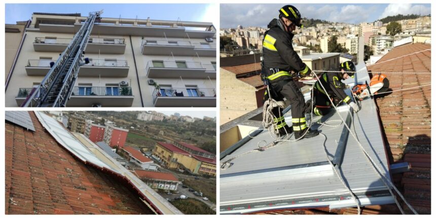 Intervento dei vigili del fuoco intorno all'una di oggi pomeriggio in via Napoleone Colajanni dove il forte vento ha fatto staccare la termocopertura di un tetto. I residenti di un condominio hanno sentito un forte boato provenire dall'alto. Quando si sono affacciati hanno visto che mancava parte della tettoia. I vigili del fuoco sono saliti sul tetto e hanno messo in sicurezza il palazzo eliminando le parti pericolanti. Sul posto sono intervenuti anche i responsabili dell'Ufficio Tecnico comunale. Il maltempo oggi non hanno dato tregua a Caltanissetta. Sulla Ss640, la strada che collega il capoluogo con Agrigento, raffiche di vento e pioggia hanno ridotto la visibilità per gli automobilisti.