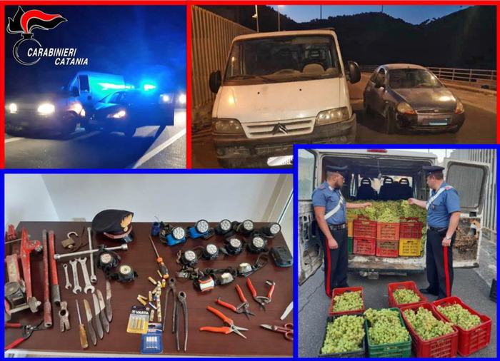 Poche ore prima i carabinieri in contrada Grassura, nell'ambito del modello di 'sicurezza partecipata' promosso dal Prefetto di Catania anche contro i reati di natura predatoria, sono riusciti a mettere in fuga dei malviventi costretti ad abbandonare sul posto una Alfa Romeo 156 che trasportava oltre 1.000 Kg di uva da tavola tipo Vittoria, rubata in un vigneto di proprietà di un coltivatore di Caltagirone. In questo caso i banditi sono riusciti a fuggire. La refurtiva è stata restituita al legittimo proprietario (ANSA).
