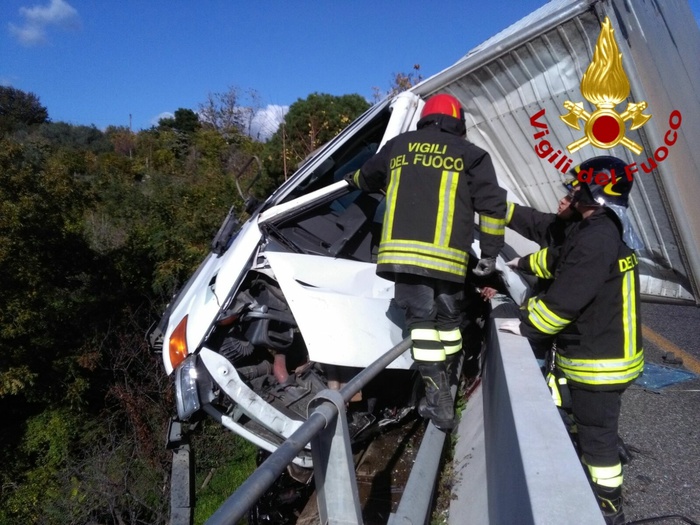 L'autista di un furgone Daily finito in bilico con il suo mezzo pesante, dopo averne perso il controllo, sull'orlo di un cavalcavia dell'autostrada Messina – Catania è stato salvato dai Vigili del Fuoco del Comando provinciale di Catania. L'incidente è avvenuto intorno alle 11.30 sul cavalcavia Tagliaborse 2, nel tratto tra Fiumefreddo di Sicilia e Riposto dell'A18. I pompieri hanno dapprima messo in sicurezza in mezzo e poi recuperato l'uomo, che ha riportato ferite e contusioni varie. Il ferito è stato trasportato in ospedale con un elicottero del 118. Alle operazioni di soccorso hanno preso parte la squadra dei vigili del fuoco di Riposto, il personale volontario dei vigili del fuoco di Linguaglossa, un elicottero ed il personale del Nucleo Saf dei Vigili del Fuoco, oltre a un'autogru ed un'autoscala della Sede Centrale. (ANSA)