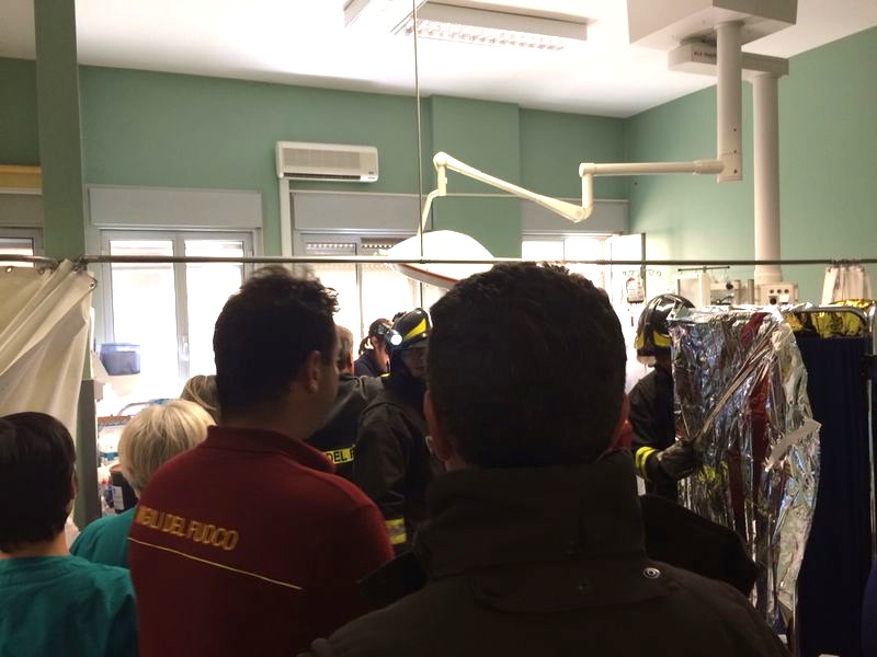 NELLA FOTO DI SEGUONEWS.IT I VIGILI DEL FUOCO NELLA SALA INTERVENTI DEL PRONTO SOCCORSO