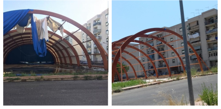 Ecco (come si vede nelle foto) la fine che ha fatto il Centro polisportivo “Don Pino Puglisi”, situato nel quartiere Fondo Iozza, in via Portuense. La copertura che era stata realizzata è stata eliminata e la struttura è stata abbandonata a se stessa. Dopo la realizzazione della copertura, il centro sportivo è finito nelle mani dei vandali. La struttura era stata completata ma la città non ne ha mai usufruito. Adesso al danno si aggiunge la beffa perché la copertura è tutta da rifare.