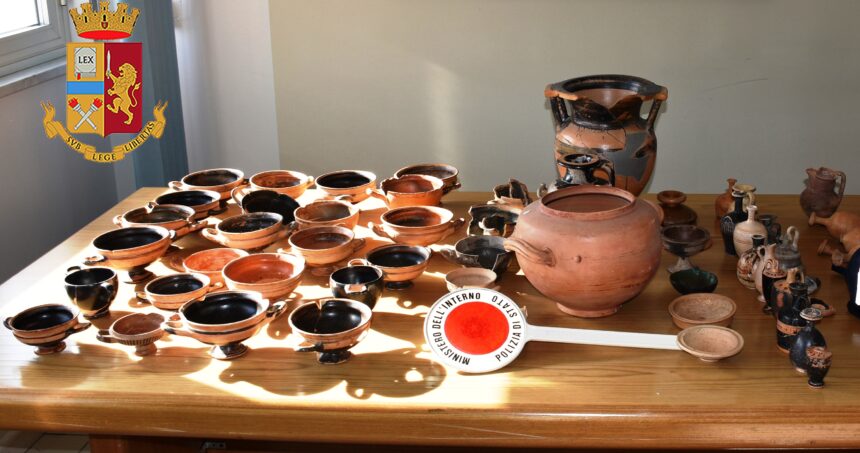 Nel pomeriggio di ieri l’equipaggio di una volante del Commissariato di Gela, nel corso di un posto di blocco, presso la rotonda in prossimità del palazzo di Giustizia, ha fermato un autocarro cassonato, recante la scritta “traslochi”, proveniente dalla SS117 bis. A bordo del mezzo sono stati controllati due catanesi, ultrasessantenni, uno dei quali con precedenti di polizia. L’ispezione del cassone del mezzo ha consentito agli agenti di trovare una cassa di legno all’interno della quale, accuratamente riposti, avvolti in fogli di carta di giornali, vi erano decine di reperti archeologici, ciotole, vasi e anfore verosimilmente risalenti a epoca greca. I due fermati sono stati denunciati in stato di libertà alla Procura della Repubblica di Gela per traffico di reperti archeologici e ricettazione. L’autocarro è stato sottoposto a sequestro perché veicolo utilizzato per commettere il reato. I reperti archeologici, sottoposti a sequestro, saranno affidati in giudiziale custodia a esperti individuati dalla Procura della Repubblica, al fine di attestarne l’autenticità, la provenienza e, eventualmente, procedere alla loro catalogazione. Continuano le indagini al fine di individuare eventuali ulteriori responsabili del reato.