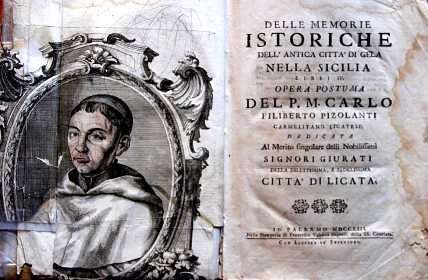 Il diciannove maggio di quattro anni e mezzo fa, alle ore 11,30, nella stanza del Sindaco del Comune di Gela, con un breve cerimoniale Nuccio Mulè ha donato al sindaco e all’assessore alla Cultura, quindi alla città, un libro antico del Settecento dal titolo “Delle memorie istoriche dell’antica città di Gela nella Sicilia” scritto da Padre Maestro Carlo Filiberto Pizolanti, carmelitano licatese, e stampato nel 1753 a Palermo. Il libro in oggetto, tempo prima, era stato regalato a Mulè da una signora che ha sempre voluto mantenere l’anonimato. Il libro, allora consegnato, ha una peculiarità che lo rende unico in quanto il possessore in antico dello stesso, in epoca imprecisata, aveva aggiunto a penna ai margini del testo delle note che contestavano l’ipotesi del Pizolanti in merito all’ubicazione della Gela greca nel sito di Licata; tale donazione prevedeva un piccolo restauro da parte dei suddetti, allora amministratori del Comune, dopo il quale, pertanto, doveva essere trasferito alla locale biblioteca per la pubblica fruizione.