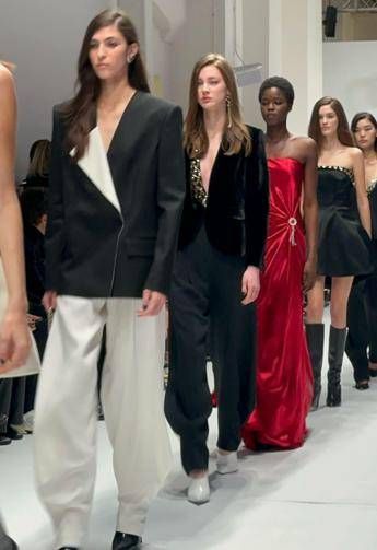 (Adnkronos) – "Volevo omaggiare le donne che fanno tanto come madri e nel lavoro. Fanno sempre tutto in silenzio e io voglio dare voce a questo valore, bisogna riconoscerlo di più". Sara Cavazza Facchini attinge a piene mani all’archivio per tratteggiare la fall winter 2025/2026 di Genny, pensata per rendere onore al merito delle donne. "L’azienda è composta al 90% da donne – spiega la stilista nel backstage della sfilata -. Noi donne facciamo il doppio. Per questa stagione ho avuto voglia di tornare nel passato, di fare ricerca dei pezzi d’archivio e far emergere ancora di più l’anima di Genny”. Quarantacinque le uscite in passerella, con la supertop Isabeli Fontana che apre e chiude lo show, in un viaggio nell'archivio in cui si trovano prototipi e modelli disegnati per il marchio dal 1962 ai giorni nostri. A partire dalla nappa, ornamento fatto da un mazzetto di fili intrecciati a un’estremità che nella religione induista evoca il processo di risveglio spirituale con cui si arriva alla beatitudine mentre nell'araldica ecclesiastica e militare indica la dignità rivestita da chi la indossa. Se per Versace nel 1993 la nappa era un segno grafico di grande eleganza, per la stilista è una vera e propria onorificenza conferita alle donne, squisitamente femminili con la giacca da smoking, i pantaloni sciolti, il gilet e un cravattino che in realtà è un fiocco. “È un elemento che in passato che veniva donato agli uomini come simbolo di onorificenza assoluta – spiega Cavazza Facchini – io oggi ho voluto usarlo per fare onore alle donne”. In passerella le nappe sono onnipresenti. Stampate oppure ricamate con due o tre tecniche diverse sulla camicia maschile, ma anche trasformate in decorazioni tridimensionali intrecciate nel pullover di mohair bianco-lana o, ancora, utilizzate come pendenti in cuoio su mocassini e slingback, in seta e cristalli sulle borse da sera. Quasi tutti gli elementi decorativi della collezione arrivano dall'archivio a cominciare dai tubicini di metallo intorno allo scollo del cardigan trasformati in un nuovo tipo di piping, passando per la G di Genny che diventa fibbia e bottone e per la ghiera di ottone forato usata come una medaglia al valore della femminilità. I cuori a cui è appesa la nappa si uniscono a una catena dorata nella nuova cintura-gioiello. E poi l'ampio cappotto è tagliato come un pastrano militare che la stilista si drappeggia addosso al contrario allacciando le maniche come nastri di un corsetto sulla schiena, ideando cosi i volumi di uno abito da sera bianco e nero. "Avevo voglia di tornare all’archivio Genny – rimarca Cavazza Facchini – ho rimesso in passerella la stampa del 1993 insieme ad altri elementi. E poi una giacca nera con il revers bianco. È un viaggio nel passato per far rivivere la bellezza di Genny oggi. È una collezione molto couture e smoking tailoring". Il tutto con un tocco very British come i check che ricoprono lunghi cappotti e blouson. (di Federica Mochi) —modawebinfo@adnkronos.com (Web Info)