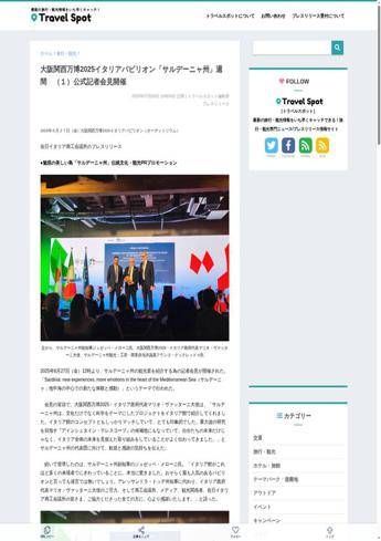 (Adnkronos) – 03 luglio 2025_ La Sardegna ha presentato le sue tradizioni culturali e turistiche all'Expo 2025 di Osaka, durante una conferenza stampa tenutasi il 27 giugno. Il tema dell'evento, "Sardinia: new experiences, more emotions in the heart of the Mediterranean Sea", ha messo in risalto l'importanza della regione nel contesto italiano e internazionale. Il rappresentante del governo italiano, Mario Vattani, ha elogiato l'impatto della Sardegna, sottolineando il suo contributo alla scienza e alla cultura, mentre il vicegovernatore Giuseppe Meloni ha espresso sorpresa per l'affluenza al padiglione italiano. La notizia è stata riportata da travelspot.jp, evidenziando l'interesse crescente per la Sardegna come meta turistica. L'evento ha incluso anche un pranzo tematico con piatti tipici sardi, offrendo un assaggio della gastronomia italiana ai partecipanti. —rassegna-stampa/italianowebinfo@adnkronos.com (Web Info)