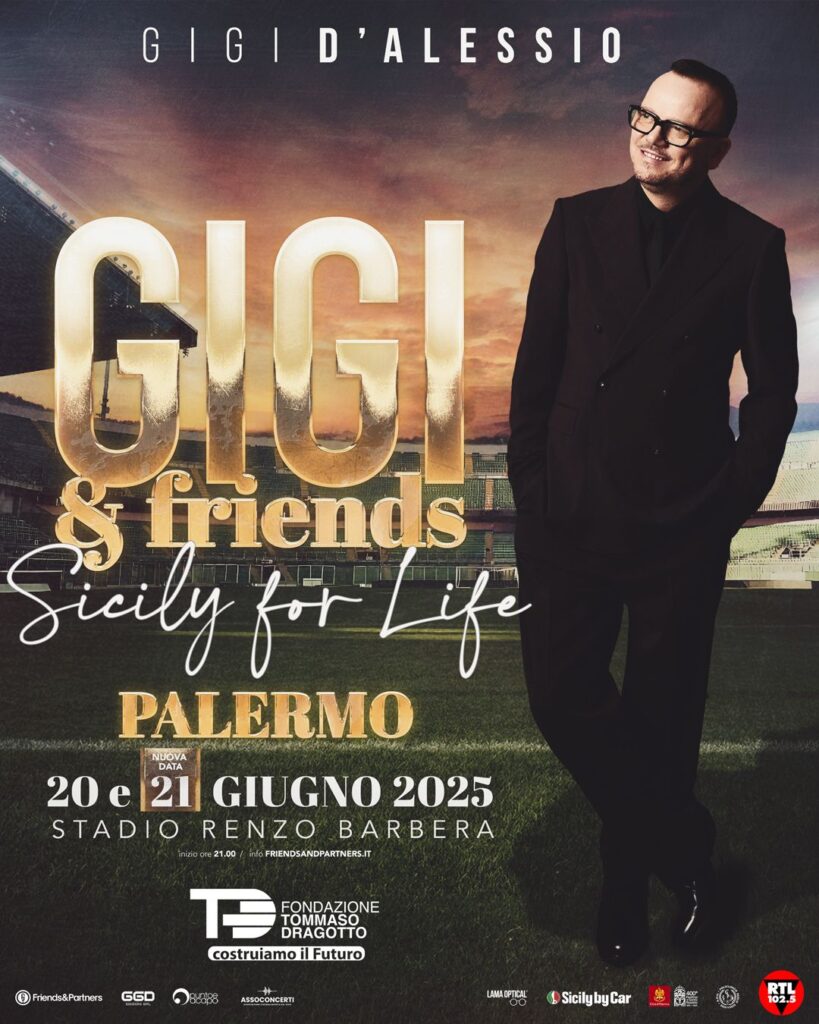 Arriva il raddoppio di “SICILY FOR LIFE – GIGI & FRIENDS”: dopo l’appuntamento già annunciato per venerdì 20 giugno allo Stadio Renzo Barbera di Palermo, a grande richiesta Gigi D’Alessio annuncia la seconda data sabato 21 giugno, per quelle che saranno due indimenticabili seratedi musica e una importante iniziativa di solidarietà.
