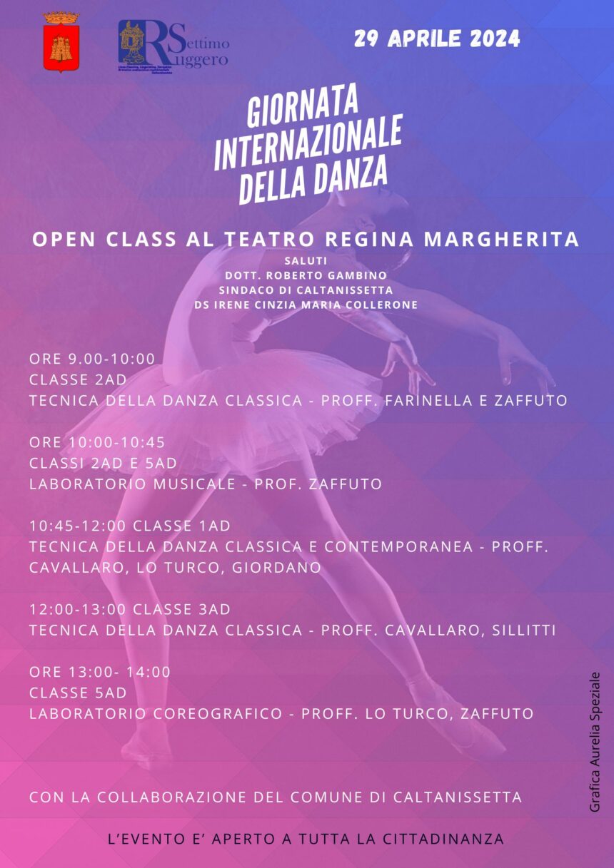 Lunedì 29 aprile, in occasione della Giornata Internazionale della Danza, il liceo coreutico “Ruggero Settimo” di Caltanissetta aprirà le porte al territorio con un'intensa mattinata di open class presso il Teatro Comunale Regina Margherita.