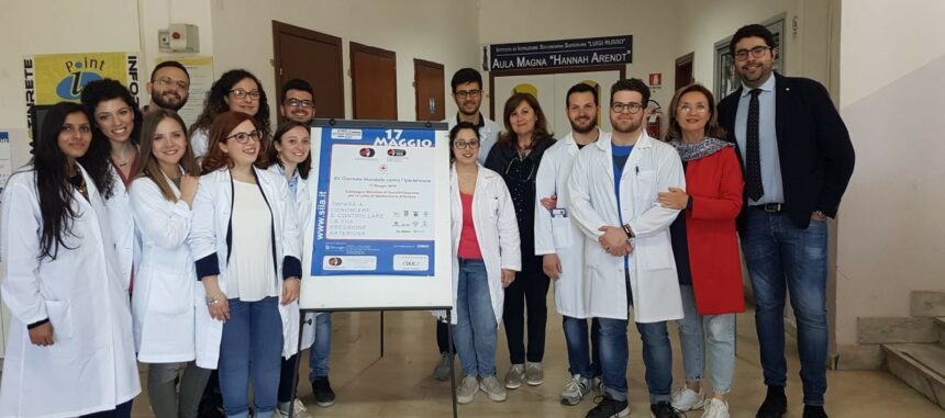 In occasione della XV Giornata Mondiale contro l'Ipertensione Arteriosa, promossa in Italia dalla Società Italiana dell’Ipertensione Arteriosa, si è tenuta presso l’I.I.S.S Luigi Russo di Caltanissetta, una campagna informativa e di screening rivolta agli studenti, riguardo tale condizione clinica. La realizzazione di tale evento è stata possibile grazie all’interessamento del Dott. Giulio Geraci e del Prof. Giuseppe Mulè, rispettivamente Dottorando di Ricerca e Professore Associato presso il Centro di Riferimento Regionale e Centro di Eccellenza Europeo per l’Ipertensione Arteriosa e la Prevenzione Cardiovascolare Dell’Università di Palermo, alla collaborazione degli studenti del Corso di Laurea “ Hypatia” in Medicina e Chirurgia dell’Università di Palermo presso la sede distaccata di Caltanissetta e delle docenti Francesca Bennardo, Paola Garito e Maria Concetta Melillo dell’I.I.S.S Russo. Alla base di tale Giornata, vi è stata la volontà di promuovere sul territorio iniziative di informazione e sensibilizzazione dei cittadini sul tema dell’ipertensione arteriosa (I.A.) e delle malattie ad essa correlate. I più recenti studi segnalano un allarmante aumento della prevalenza dell’ipertensione anche in età infantile e giovanile. Le modifiche dello stile di vita, la sedentarietà, un uso eccessivo dei computer, dei videogiochi e il conseguente incremento di sovrappeso ed obesità in età adolescenziale sembrano essere le principali cause di tale fenomeno, che in larga misura rimane misconosciuto e sottovalutato, per l’abitudine a non misurare la pressione in giovane età. Per tali motivi, nella mattinata del 17 Maggio 2019, il Centro di Riferimento Regionale e di Eccellenza Europeo per l’Ipertensione Arteriosa (Policlinico di Palermo) ha effettuato la misurazione dei valori pressori e la diffusione di materiale divulgativo sull’ipertensione arteriosa presso l’I.I.S.S Luigi Russo di Caltanissetta. Tale iniziativa ha assunto duplice finalità: Sensibilizzare i giovani alla prevenzione cardiovascolare e identificare giovani/adulti con ipertensione arteriosa misconosciuta. Gli studenti del Corso di Laurea in Medicina e Chirurgia “Hypatia” dell’Università di Palermo con sede a Caltanissetta, Emanuele Orlando, Gabriele Di Maira, Alessandra Bellavia, Puja Khugputh, Annalisa Ammoscato, Davide Mistretta, Eleonora Caruso, Carmen Giarratana insieme ai giovani colleghi Dott. Carmelo Carrubba, Dott.ssa Alida Tunno sono stati suddivisi in due squadre capitanate dal Dott. Ettore Mancia e dalla Dott.ssa Margherita Schillaci, che girando per le classi seconde e terze dell’Istituto, hanno effettuato complessivamente circa 300 misurazioni della pressione arteriosa, illustrando contemporaneamente ai presenti cos’è l’ipertensione, i danni che provoca al nostro organismo quando scarsamente controllata, come effettuare correttamente il Società Italiana dell’Ipertensione Arteriosa rilievo della pressione arteriosa tramite sfigmomanometro ed evidenziando l’importanza della prevenzione del rischio cardiovascolare tramite la modifica dello stile di vita. I ragazzi in cui sono stati riscontrati valori pressori alterati sono stati invitati ad effettuare delle auto-misurazioni domiciliari per escludere un rialzo pressorio dovuto all’ansia della misurazione (la cossidetta “ipertensione da camice bianco”) e compilare un diario pressorio da consegnare al medico curante. Nel frattempo, il Dott. Giulio Geraci (Dottorando di Ricerca dell’Università di Palermo – Dirigente Medico – U.O. Medicina Interna “S.Elia”) ha tenuto un incontro/dibattito sull’Ipertensione Arteriosa rivolto alle quarte classi dell’Indirizzo Tecnologico. Notevole è stata la partecipazione e l’interesse manifestato da parte degli studenti, ponendo le basi per future iniziative di educazione alla promozione e alla prevenzione della Salute.