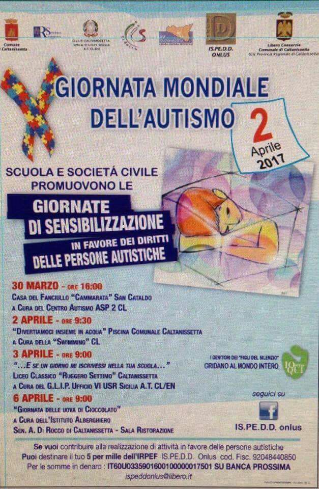 In occasione della decima Giornata mondiale dell'autismo (domenica 2 aprile) sono quattro gli appuntamenti previsti tra Caltanissetta e San Cataldo per promuovere la sensibilizzazione nei confronti delle persone affette da disturbi dello spettro autistico.