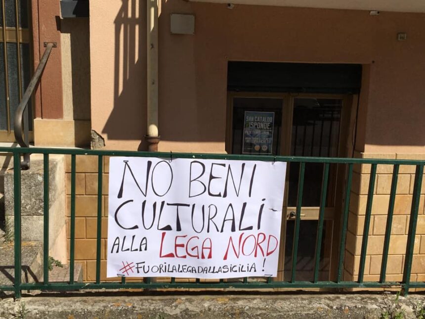 Il cartellone di protesta contro la nomina di un assessore Leghista ai beni culturali è durato meno di 24 ore.
