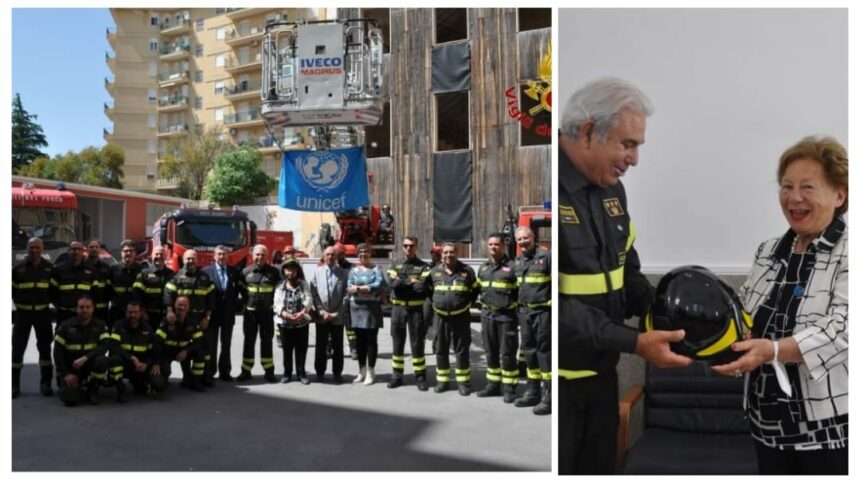 Giornata speciale questa mattina al Comando provinciale dei Vigili del Fuoco di Caltanissetta. In occasione della celebrazione del 75° anniversario della propria nascita, l’Unicef ha riservato ai Vigili del Fuoco l’importante ruolo di Ambasciatori di buona volontà. Il Presidente Nazionale dell’Unicef Carmela Pace, alla presenza del Presidente Regionale Vincenzo Lorefice e di Michela Nicosia in rappresentanza del Comitato Provinciale di Caltanissetta, in virtù di tale riconoscimento, ha avuto il piacere di procedere personalmente alla consegna delle spilla con il logo Unicef al comanante provinciale Salvatore Rizzo e figurativamente a tutto il personale del Comando dei Vigili del Fuoco di Caltanissetta. E’ stato un grande onore per i Vigili del Fuoco del Comando ricevere l’ambito riconoscimento dal presidente Nazionale dell'Unicef, che li rende fieri delle attività svolte, in particolare quelle rivolte ai bambini ed agli adolescenti sia nell'attività di soccorso che a promozione della cultura della sicurezza e della prevenzione dai rischi. Il Comando ha avuto il piacere di donare un elmo per vigile del fuoco a memoria storica dell'evento.