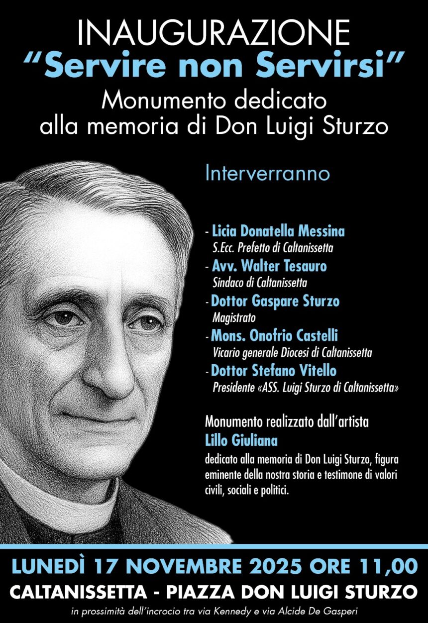 Il 17 novembre a Caltanissetta sarà inaugurata la stele intitolata a Don Luigi Sturzo