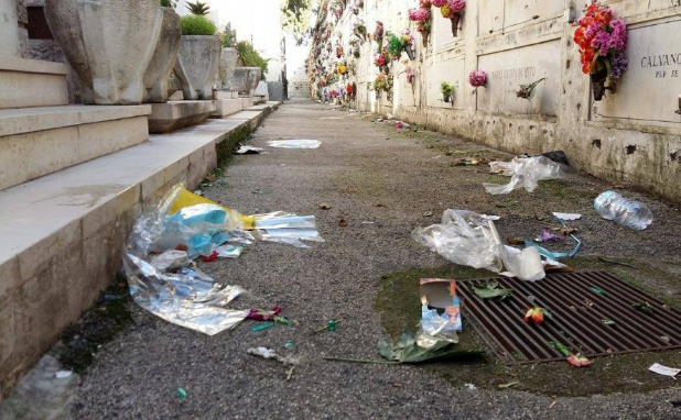 Cestini colmi di spazzatura al cimiteroTali società, infatti, sono private e, come tali, la loro pulizia non è a carico del Comune ma spettava e spetta alle predette Società ed Associazioni che, fino all'esecuzione del sequestro, utilizzavano delle imprese e/o soggetti privati che, dopo l'esecuzione dei sequestri, hanno “lasciato” silenziosamente l'incarico, dileguandosi!