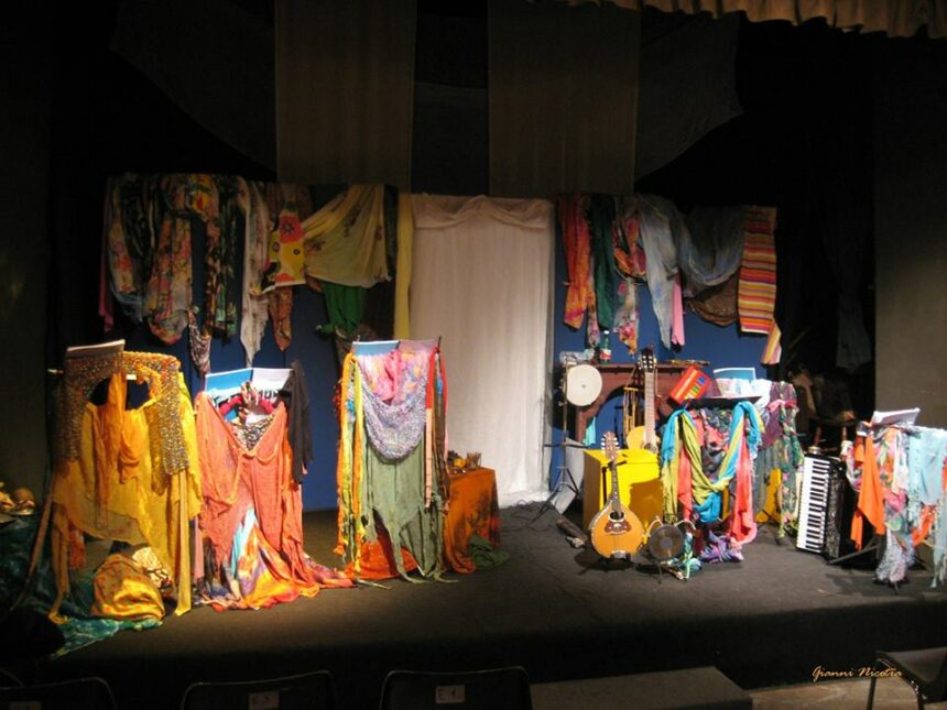 Vecchie grancasse “arripizzate”, secchi di zinco mezzo sfondati, brocche di terracotta “sgangate”, drappi colorati e poi strumenti antichi e piccoli giocattoli di gomma, scatole di uova, scorze di noci di cocco, biglie, nacchere, legnetti, leggii e ancora tante e tante cose messe lì pronte (poi si scoprirà il perché) a eseguire una sinfonia; sì, una sinfonia fatta di note e di parole, di colori e di rumori. Questo è “Vangelu secunnu” di Cinzia Caminiti Nicotra. Uno spettacolo, organizzato dall’assessorato “ai saperi e alla bellezza condivisa” del comune di Catania, denso di racconti e canti popolari liberamente ispirato ai Vangeli apocrifi e che narra la storia di Gesubamminu da quando nasce e fino alla licenza elementare. Un testo raffinato, in dialetto siciliano arcaico, che sin dall’inizio sorprende per la sua musicalità e la ricercatezza nello stile e nei contenuti che restano comunque antichi e popolari nonostante la modernità del ritmo che mai si perde e anzi diventa sempre più incalzante fino a diventare, alla fine, alla scuola del maestro Zaccheo, fragoroso e coinvolgente come fuochi d’artificio. La regia a firma della stessa autrice è semplice ma non per questo banale anzi ben congegnata e con delle intuizioni davvero interessanti come quella per esempio di sottolineare le sensazioni, i miracoli, gli “incidenti”, e i momenti più significativi come le feste di paese, il lavoro nei campi, i giochi dei fanciulli, i suoni della natura e tanto altro ancora, con i rumori tipici: (la sega, l’acqua che scorre, gli uccellini che cinguettano, il gallo che canta al mattino…) dando così alla messa in scena un particolare e originale valore visivo ed uditivo. Tutto fa musica! In scena tre affabulatrici, tre musicanti e un madonnaro che invece di disegnarli a terra i santini, li proietta qui e là sulla scena. Anche questa una gradevolissima trovata. Le immaginette, bellissime e antiche, sono state raccolte ed elaborate su dei bei video realizzati da Gianni Nicotra. E poi, Iddu, il divo! Gesù detto pure, Salvo, Salvuccio, Turi, Savvatore… visto dall’autrice, sì come “un picciriddu troppu troppu spiciali” ma anche e soprattutto come un bimbo vero, terreno, umano, discolo e dispettoso che combina di tutto e fa arrabbiare la bella Madre e il povero Patriarca suo padre: un divertentissimo pargolo molto somigliante ad un fumetto! Le affabulatrici, colonne portanti di questa delicatissima opera hanno il delicato compito di accompagnarci in questo viaggio che traccia la vita e i prodigi e gli incontri del personaggio più importante e famoso di tutta la Storia e lo fanno con un rigore, una maestria e una professionalità davvero rara. Sono in tre e sembrano una sola, parlano, cantano, e si muovono con leggiadria e sicurezza. E’ bello ciò che raccontano e lo sanno e perciò fanno ridere, fanno commuovere, fanno cantare insieme a loro le più belle ninnarelle e battere a tempo le mani. Sono Cinzia Caminiti, Rosalba Sinesio, Iolanda Fichera. Tre attrici di grande spessore che sanno come trattare il dialetto antico e il canto popolare siciliano. I tre musicanti oltre ad essere qui eccellenti musicisti polistrumentisti (Paolo Filippini credibilissimo fisarmonicista, Stefano La rosa virtuoso chitarrista e Paolo Capodanno ora ai flauti, ora ai plettri, ora alle percussioni) sono qui chiamati anche a fare, (oltre che a sorpresa l’interpretazione di Nichi Vendola e di Dio dalla possente voce), con i “rumori” di cui sopra da colonna sonora a tutta la messa in scena. Ed è musica, bella anche a vedersi! Loro sono tre e sembrano un’orchestra. Paolo Capodanno autore delle musiche, è una vecchia conoscenza in fatto di composizione per teatro e non ha mai (a che mi risulti) sbagliato un colpo. Con questo lavoro conferma la propria sensibilità musicale e insieme all’autrice la loro ormai consolidata intesa artistica. Affabulatrici, musicanti e madonnaro, sono una bella compagine: ognuno, sempre, ben calato nel ruolo che interpreta e tutti insieme, sempre, in sintonia l’uno con l’altro. La compagnia “schizzid’arte”, da quasi trent’anni si occupa di ricerca e ci ha abituati ormai a cose pregevoli, non abbiamo dimenticato “la canzone d’autore del primo Novecento a Catania” una rarità che ancora ricordiamo e di cui conserviamo il preziosissimo cd. Per questo ultimo lavoro perciò non ci aspettavamo di meno. Sono molto bravi e lo sappiamo. Ora, cosa si chiede in fondo, ad uno spettacolo? Stupore, poesia, ironia, commozione, incanto… e quello che abbiamo visto stasera è senz’altro tutto questo e forse qualcosa di più. Il pubblico, estasiato, (tanti i giovani in sala) ha gradito.
