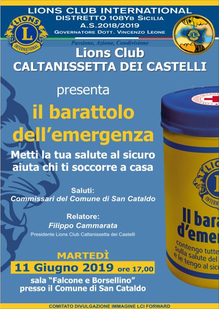 Si svolgerà martedì 11 giugno 2019, con inizio alle ore 17.00 presso la Sala Borsellino del Comune di San Cataldo, la presentazione del services "Il Barattolo dell'Emergenza", sviluppato nel nostro territorio dal Lions Club "Caltanissetta dei Castelli".