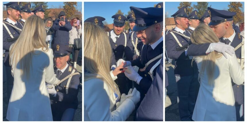 Il nisseno Simone Pio Di Gloria è stato uno degli agenti che ieri, ad Alessandria, ha prestato giurameto alla divisa della Polizia di Stato. A passargli il testimone il papà Giovanni, poliziotto della questura di Caltanissetta, che è andato in pensione il primo maggio scorso. Durante la cerimonia ha fatto un altro giuramento. Con tanto di anello ha chiesto alla fidanzata Alicya Buscemi di sposarlo tra gli applausi dei presenti.