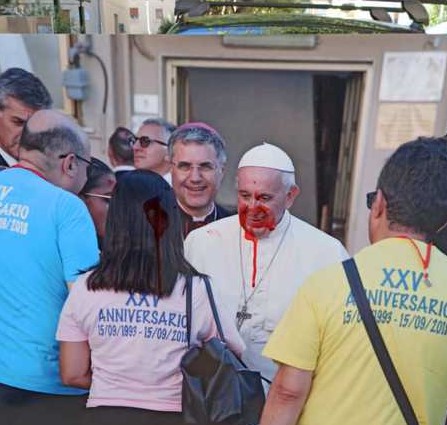 Le foto di Papa Francesco e quella del fratello di Don Pino Puglisi che si trovano vicino alla casa del Beato in piazza Anita Garibaldi a Palermo sono state imbrattate con della vernice rossa. Gli scatti sono esposti dal 15 settembre del 2018 durante la visita del Pontefice nel capoluogo siciliano a 25 anni dalla morte di don Pino Puglisi.