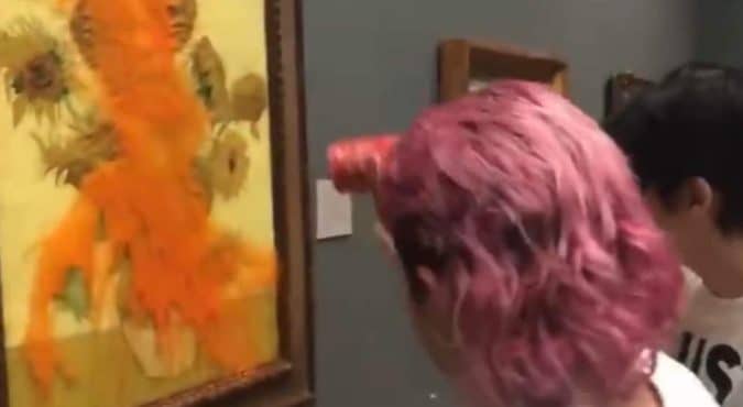 Due attiviste della campagna di protesta anti-petrolio Just Stop Oil hanno lanciato zuppa di pomodoro sui Girasoli di Van Gogh alla National Gallery. A darne la notizia -poi ripresa dai media britannici- è stato il movimento ambientalista, che ha diffuso un video. Dopo l'attacco le 2 attiviste si sono incollate al muro e sono poi state arrestate. Tre mesi fa sempre alla National attaccata una tela di Constable. La versione inglese dei Girasoli -in tutto 7, e 4 esposte ad Amsterdam, Tokyo, Monaco e Filadelfia- è stimata 80mln di euro. (Rainews.24)