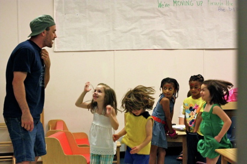 Nella foto: un momento didattico del professore Levine con piccoli allievi.