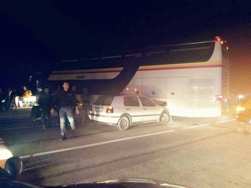 Nuovo incidente, dopo quello verificatosi alle 20, sulla Ss 626 Caltanissetta-Gela. Sembrerebbe che proprio per via del primo incidente, uno scontro frontale tra due auto, l'autista del pullman avrebbe deciso di fare inversione, vista la lunga coda che si era formata. In quel momento però sopraggiungeva una Golf che è finita dritta sul mezzo schiantandosi. Feriti sia il conducente che il passeggero della Golf per fortuna non in maniera grave. Grande paura per i passeggeri del bus, 40 in tutto, che grazie al grande lavoro dei poliziotti delle Volanti intervenuti sul posto sono stai spostati su un altro pullman. L'incidente si è verificato intorno alle 21, il pullman era partito da Catania e stava dirigendosi verso Agrigento. Sul posto la polizia stradale per i rilievi. (Foto seguonews)