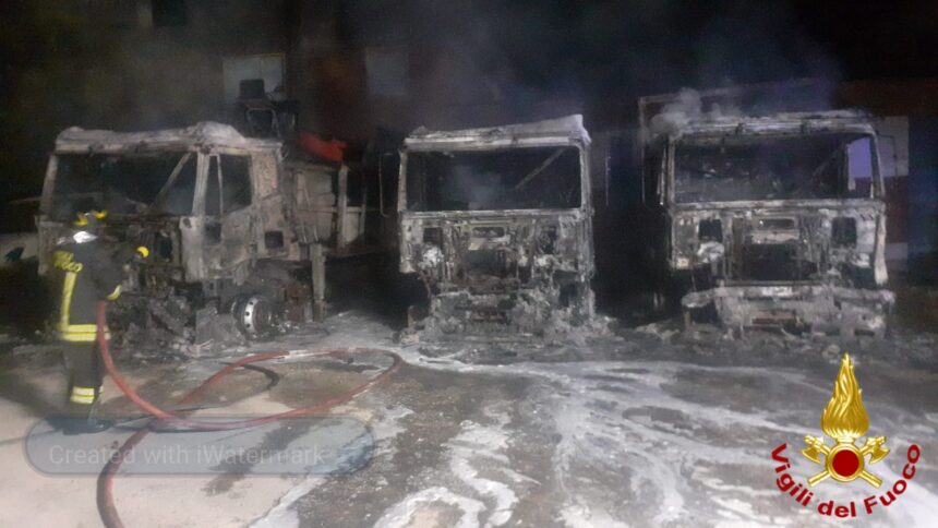 Quattro mezzi pesanti sono stati distrutti dalle fiamme questa notte, intorno alle 2.30, a Niscemi nel piazzale della stazione ferroviaria. L'incendio ha tenuto impegnati per oltre tre ore i vigili del fuoco intervenuti dal distaccamento di Mazzarino, con una squadra di rinforzo da Gela. Distrutti due autocarri in disuso, una motrice che veniva regolarmente utilizzata e un furgone. Intervenuti anche i poliziotti del commissariato di Niscemi. Sono in corso gli accertamenti dei vigili del fuoco per determinare la natura dell'incendio.
