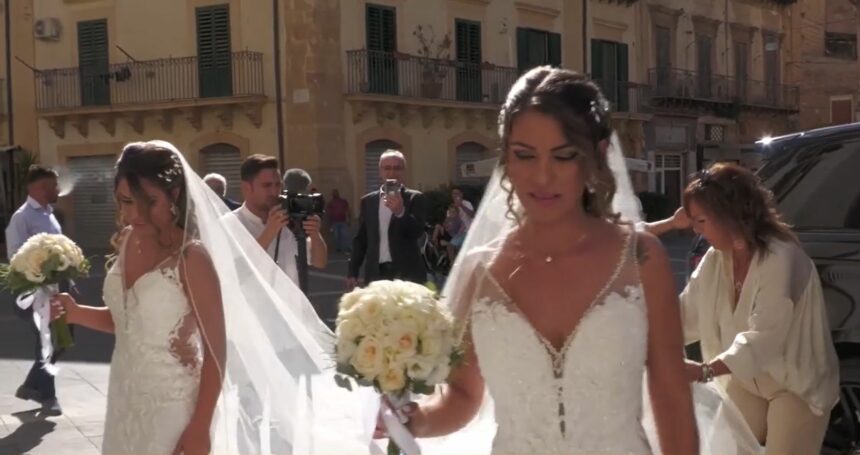 Sono nate nello stesso giorno e nello stesso giorno hanno pronunciato il fatidico sì. Sonia e Daniela Lo Iacono hanno condiviso tutto dalla nascita. Adesso sono convolate a nozze rispettivamente con Salvatore Bellomo e Angelo Parisi. Il matrimonio è stato celebrato nella Cattedrale di Caltanissetta, con una cerimonia condivisa. Ad accompagnare le due figlie all'altare, è stato un padre molto ma molto emozionato.