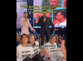 (Adnkronos) – Alcuni attivisti del movimento per la coesistenza ebraico-araba e la giustizia sociale Standing Together sono saliti senza autorizzazione sul palco durante la trasmissione in diretta del reality show 'Grande Fratello' in Israele per protestare contro la guerra a Gaza. Secondo quanto riferito da Haaretz, quattro membri del gruppo, con indosso magliette con la scritta 'Lasciare Gaza' sono saliti sul palco, si sono seduti e presi per mano. "La guerra a Gaza deve finire! La guerra ci sta uccidendo tutti!", ha gridato uno degli attivisti mentre la sicurezza cercava di farli scendere dal palco. Gli attivisti hanno poi aggiunto che "il governo israeliano sta mandando i soldati a morire! Israele sta affamando Gaza! Bambini, donne, anziani e ostaggi! La nazione chiede un cessate il fuoco!". In una nota diffusa dopo i fatti, 'Standing Together' ha denunciato che "mentre gli ostaggi vengono abbandonati alla morte e i bambini muoiono di fame a solo un'ora di macchina dagli studi del Grande Fratello, i media non dicono alla Nazione cosa sta succedendo a Gaza e comunicano ai cittadini che tutto sta andando come al solito". —internazionale/esteriwebinfo@adnkronos.com (Web Info)