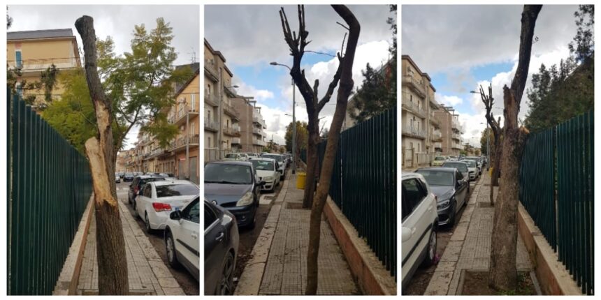 Le foglie e i rami degli alberi di viale Indipendenza, a San Cataldo, non si muovono più. Non si muovono perché non esistono più, in conseguenza di una recente, brutale capitozzatura.
