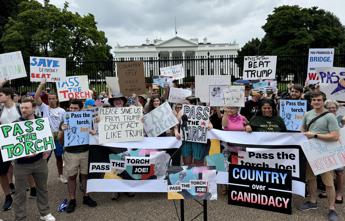 "Joe, è arrivato il momento di andare", "Per favore salvaci da Trump, non comportarti come lui". Questi alcuni degli slogan dei cartelli esposti di fronte alla Casa Bianca durante la manifestazione indetta da "Pass the Torch," passa il testimone, organizzazione di base nata per chiedere al presidente democratico di fare un passo indietro. "Il presidente Biden ha fatto grandi cose, ma Donald Trump è una minaccia alla nostra esistenza e abbiamo bisogno del ticket più forte che abbiamo per massimizzare le possibilità di sconfiggerlo", si legge sul sito del gruppo. Uno degli oratori del rally si è chiesto: "Perché non dovremmo ascoltare i dati per prendere la decisione per le nostre vite?", riferendosi ai sondaggi che danno Biden in caduta libera. E il candidato repubblicano alla vice presidenza, JD Vance, ha rincarato la dose: "Se non può correre per la Casa Bianca, non può neanche essere presidente, deve dimettersi". "Tutti quelli che stanno chiedendo a Joe Biden di rinunciare alla candidatura senza però chiedergli di dimettersi dalla presidenza mostrano un livello assurdo di cinismo", ha scritto su X. Ma, nonostante le crescenti pressioni, il presidente americano non appare per nulla intenzionato a cedere e si prepara, una volta concluso l'isolamento per il Covid nella sua casa al mare in Delaware, a tornare a fare campagna elettorale, con una puntata in Georgia e Texas nei prossimi giorni. E' quanto rivela Axios citando fonti vicine a Biden.