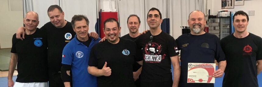 Il Maestro Alfonso Torregrossa ha affrontato ed insegnato le corrette modalità di combattimento a distanza ravvicinata con pistola contro avversari armati di coltello e viceversa. Oltre ai civili, numerosi sono stati i anche gli operatori delle Forze dell’Ordine che hanno potuto apprendere le migliori tecniche di protezione e sopravvivenza nel caso in cui tempo e distanza dall’aggressore armato di coltello siano troppo ridotti per poter fare fuoco con l’arma di ordinanza, utilizzandola ad esempio come oggetto contundente, oppure nel gestire una possibile caduta a terra e poter tutelare la propria incolumità di fronte ad un avversario che continua a sferrare fendenti.