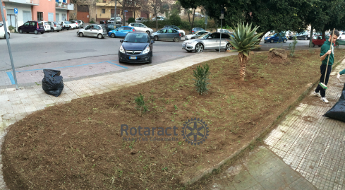 Com'era l'aiuola prima della pulizia“Abbiamo temporeggiato prima di procedere alla piantumazione poiché le condizioni meteo e la settimana di Pasqua non hanno permesso l’ingresso nell’area verde. Siamo in ritardo di circa dieci giorni rispetto alla tabella di marcia, ma consegneremo alla città l’ area verde con le nuove piante (aloe, ginestre, margherite e lantane), che, sommate agli esemplari già esistenti nell’area, renderanno finalmente quest’area un piccolo polmone urbano, rispetto alla discarica di siringhe, flaconcini ed escrementi animali che regnavano incontrastati prima del nostro arrivo. E’ un servizio a nostre spese voluto personalmente in quest’anno sociale, ma che si tramuta in servizio gratuito per la nostra città”.
