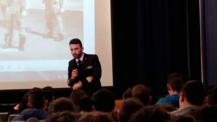 Con il supporto di un video orientativo il Capitano d’Istria ha illustrato agli alunni la possibilità di avviarsi, conseguita la licenza media, verso la carriera militare.