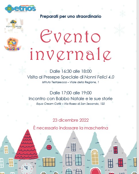 Venerdì, 23 dicembre, Cooperativa Sociale Etnos accoglie il Natale alle porte attraverso un evento invernale che si articola in due incontri volti a promuovere l’amore per il territorio e celebrare le antiche tradizioni natalizie. Dalle ore 16:30 alle ore 18:00 è possibile visitare il Presepe Speciale, presso l’Istituto Testasecca, in viale della Regione, 1. Un’interpretazione del messaggio sacro della nascita di Gesù inscenato dagli ospiti della Casa di Riposo Nonni Felici 4.0, che, grazie alla forte collaborazione dei professionisti di Etnos, hanno incantato e stupito suscitando la commozione dei parenti e dei visitatori.