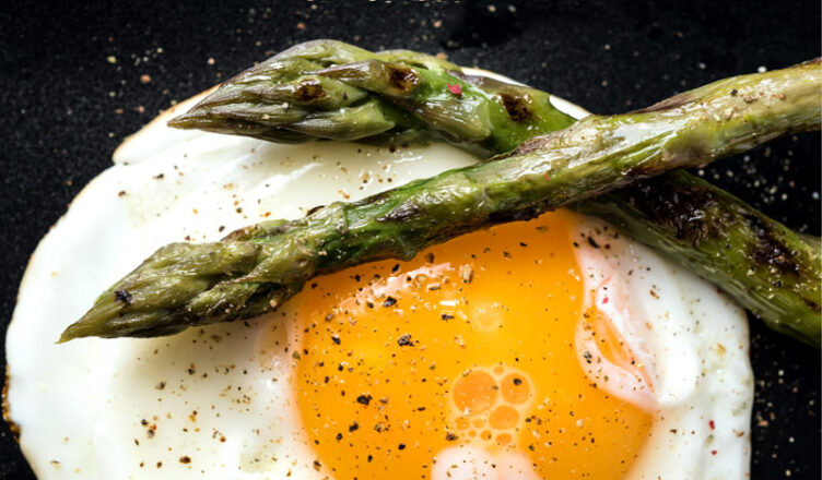 – a cena: un uovo all’occhio di bue senza burro in padella, 200 grammi di asparagi lessati, una fetta di pane integrale, una macedonia di frutta di stagione.