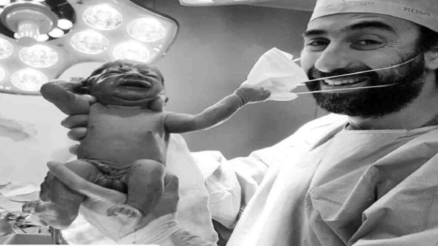 Il neonato strappa la mascherina al medico che l’ha fatto nascere: e la foto della speranza diventa virale