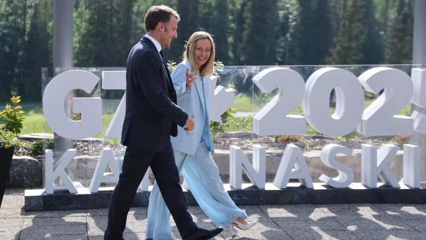 Dice che bisogna scongiurare l'ipotesi che l'Iran possa diventare una potenza nucleare, rappresentando così una minaccia non solo per Israele ma per l'intero Occidente; boccia l'idea – lanciata da Donald Trump – di affidare a Vladimir Putin un ruolo di mediatore nella crisi tra Israele e Iran; e sui dazi mostra un cauto ottimismo, sbilanciandosi sul fatto che una “soluzione si troverà”. Sotto una pioggerellina, Giorgia Meloni traccia un bilancio con la stampa del G7 in terra canadese, appena conclusosi nella cornice del Pomeroy Kananaskis Mountain Lodge, tra le montagne dell'Alberta.