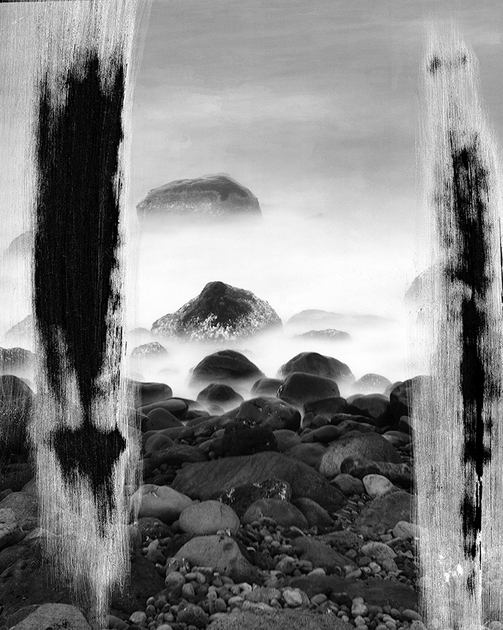 L’apparecchio fotografico di grande formato utilizzato da Simone non mira perciò a realizzare immagini nella loro perfezione formale e tecnica, ma a proporre un linguaggio proprio, all’interno di una ricerca che gli permette di dialogare con il paesaggio attraverso interventi preventivi sulla pellicola per una completa immersione estetica.