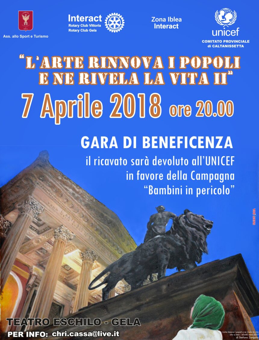 Si terrà il 7 aprile 2018 alle ore 20, presso il teatro Eschilo di Gela, la gara di beneficenza promossa dall'Interact club di Gela del distretto Interact 2110 Sicilia-Malta. Durante la serata si esibiranno i vari talenti siciliani, che avranno a disposizione il palco del teatro, per dimostrare le proprie capacità artistiche. I talenti verranno valutati da una giuria tecnica, composta da Junior Ciscardi, Francesco Trainito, Marcella Virgilio, Rita Salvo, Maria Giannone e Maurizio Nicastro, da una giuria giornalistica, formata da Maria Concetta Goldini, Giuseppe D'Onchia, Jerry Italia, Liliana Blanco, Andrea Cassisi, e dai giudici ad honorem Evita Lorefice e Alessandro Fasciana. A presentare la serata sarà Nuccia Ferrigno. E’ possibile presentare la domanda di iscrizione e richiederla entro il 7 marzo 2018 al seguente indirizzo e-mail:chri.cassa@live.it. Il regolamento e la domanda di iscrizione sono allegati a quest’articolo. La gara di beneficenza è patrocinata dal comune di Gela, assessorato allo Sport e Turismo e dal Rotary club di Gela. L’ingresso al teatro Eschilo è gratuito. I vincitori delle quattro categorie (danza, recitazione, letteratura e canto) si aggiudicheranno dei premi facoltosi offerti dagli sponsor.