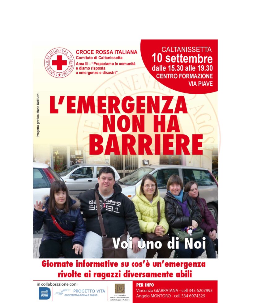 Una giornata informativa per spiegare ai ragazzi diversamente abili cos'è un'emergenza. L'iniziativa, denominata “L'emergenza non ha barriere”, inizierà domani, 10 settembre, nella sede del Comitato di Caltanissetta della Croce Rossa in via Piave, dalle ore 15.30 alle 19.30.