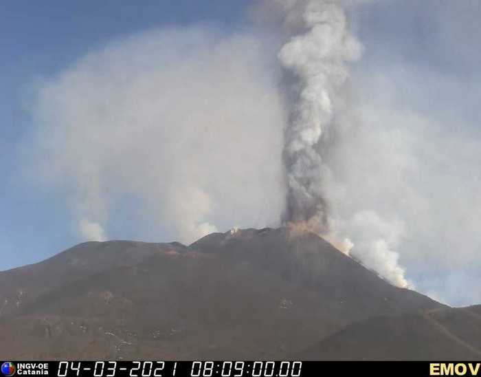 Il tremore vulcanico, molto elevato, ha sorgenti sotto il cratere di Sud-Est, dove sono localizzati anche gli eventi infrasonici che, per numero e frequenza, rimangono elevati. I dati della rete Gnss non mostrano variazioni significative, mentre la rete clinometrica mostra contenute variazioni (0.1 – 1 microradianti) in concomitanza con l’attività in corso. L’aeroporto di Catania, al momento, è operativo.