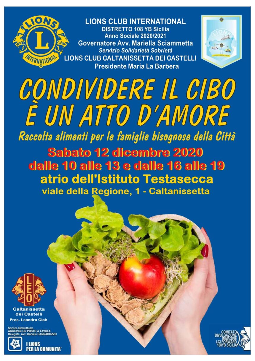 Sabato 12 dicembre, dalle 10 alle 13 e dalle 16 alle 19, il Lions Club Caltanissetta dei Castelli ed il Leo Club Caltanissetta di Castelli organizzano una raccolta alimentare a favore delle famiglie più bisognose delle Parrocchie San Domenico e Santa Croce.
