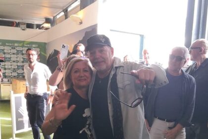 L'abbraccio di Vasco Rossi con la prof. Oresti del liceo classico “Eschilo” di Gela per Alba chiara in latino