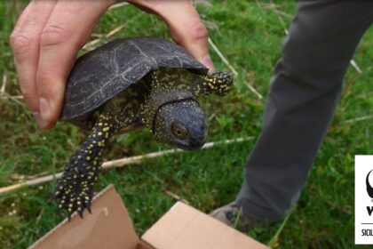 Liberata una Testuggine palustre nel lago Soprano di Serradifalco
