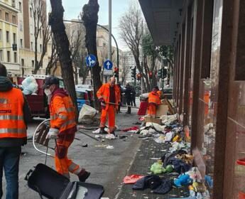 Roma, bonifica e rimozione di rifiuti e giacigli in viale Manzoni all’Esquilino