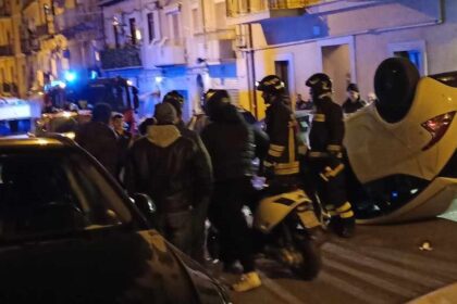 Caltanissetta: auto sbanda in pieno centro, fa carambola con altri mezzi in sosta e si ribalta