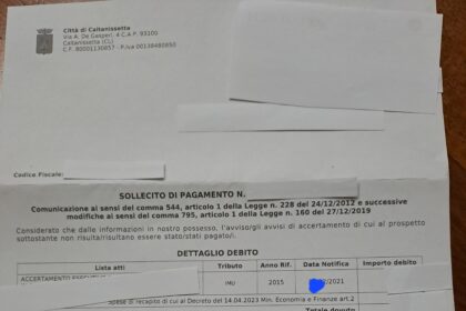 Caltanissetta, una lettrice: “Dal Comune cartelle sui tributi Imu e Tari per l’anno 2015, ma dovrebbero già essere prescritte”