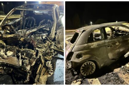 Caltanissetta, ladri a bordo di una Fiat 500 rubata inseguiti dalla polizia finiscono contro il guardrail. Scoppia l’incendio ma riescono a scappare