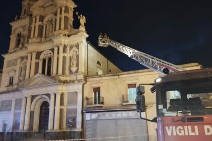 Caltanissetta, piove e crolla porzione di copertura della chiesa San Sebastiano: vigili del fuoco sul posto, area isolata per sicurezza