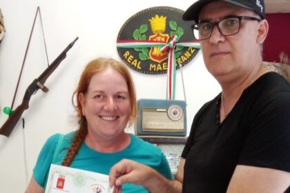 A Caltanissetta turista dal Lussemburgo riceve attestato dagli organizzatori della mostra del Vintage e Antiquariato che raggiunge quota 10mila visitatori